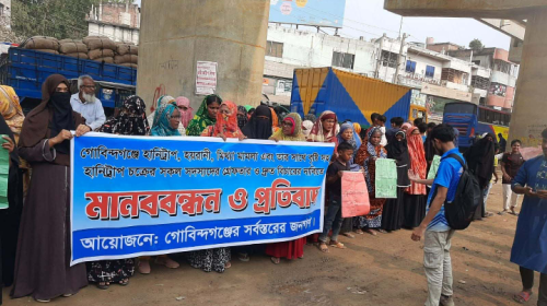 গাইবান্ধা প্রতিনিধি গাইবান্ধার গোবিন্দগঞ্জে কথিত হানিট্রাপ চক্রের সদস্য বৃষ্টি খাতুনের বিচারের দাবিতে মানববন্ধন করেছেন এলাকাবাসী। শনিবার (০৮ মার্চ ২০২৬) বিকেলে গোবিন্দগঞ্জ থানা চার মাথা মোড়ে স্থানীয় গুমানীগঞ্জ ইউনিয়ন জরিপ পুর বাসিন্দাদের উদ্যোগে এ মানববন্ধন কর্মসূচি…