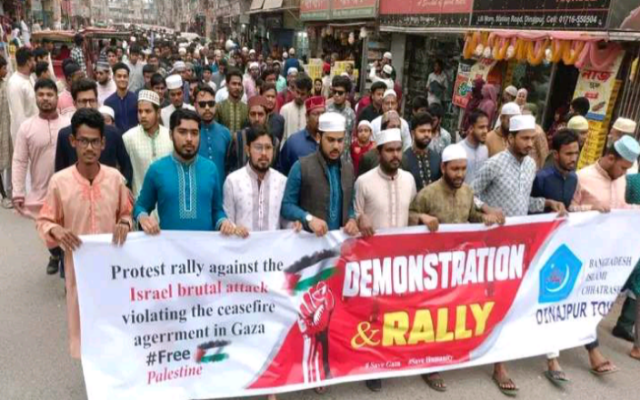 ফিলিস্তিনে গনহত্যার প্রতিবাদে দিনাজপুরে ইসলামী ছাত্রশিবির বিক্ষোভ মিছিল করেছে।