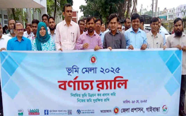নিয়মিত ভূমি উন্নয়ন কর প্রদান করি নিজের জমি সুরক্ষিত রাখি এই স্লোগান নিয়ে গাইবান্ধায় তিনদিনব্যাপী জেলা প্রশাসক কার্যালয় চত্বরে ভূমি মেলা শুরু হয়েছে। মেলা উপলক্ষে বর্ণাঢ্য র্যালি ও আলোচনা সভা অনুষ্ঠিত হয়। জেলা প্রশাসক কার্যালয় চত্বর থেকে একটি বর্ণাঢ্য র্যালি বের হয়ে বিভিন্ন সড়ক প্রদক্ষিণ করে। জেলা প্রশাসনের আয়োজনে র্যালির উদ্বোধন করেন জেলা প্রশাসক চৌধুরী মোয়াজ্জম আহমদ।