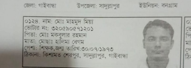সেই তালিকায় তার সিরিয়াল নম্বর ছিল ১২৪, ভোটার নম্বরের শেষাংশ ১২০১, পেশা হিসেবে শিক্ষক উল্লেখ ছিল এবং জন্মতারিখ লেখা ছিল ৩০ জুলাই ১৯৭৩ সাল।