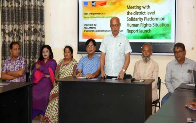 গাইবান্ধা জেলার মানবাধিকার পরিস্থিতি পর্যালোচনা প্রতিবেদন প্রকাশ বিষয়ে এক মতবিনিময় সভা শনিবার সকালে অবলম্বন কার্যালয়ের মিলনায়তনে অনুষ্ঠিত হয়। ইউরোপীয় ইউনিয়ন, ফ্রি প্রেস আনলিমিটেড ও আটিকেল নাইনটিন এর সহযোগিতায় মানবাধিকার সংগঠন অবলম্বন ও হিউম্যান রাইটস্্ ফোরাম, গাইবান্ধা এই মতবিনিময় সভার আয়োজন করে।