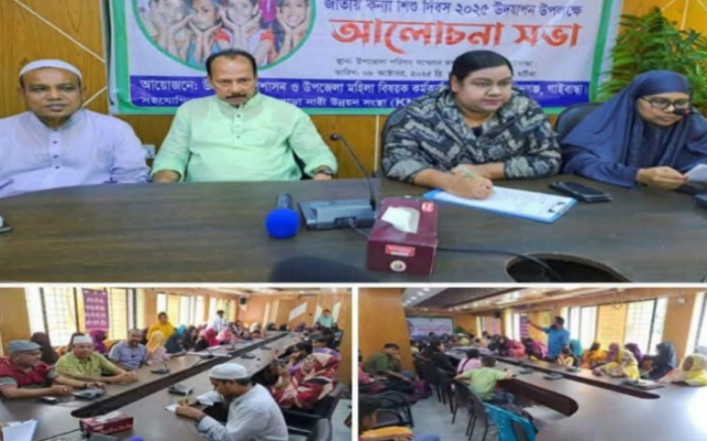 জাতীয় কণ্যা শিশু দিবস ২০২৫ইং উদযাপন উপলক্ষে ৮ অক্টোবর বুধবার সকালে গোবিন্দগঞ্জ উপজেলা পরিষদ সভাকক্ষে আলোচনা সভা অনুষ্ঠিত হয়েছে।গোবিন্দগঞ্জ উপজেলা নির্বাহী অফিসার সৈয়দা ইয়াসমিন সুলতানার সভাপতিত্বে ও উপজেলা মহিলা বিষয়ক অফিসার ফারজানা ইয়াসমিনের সঞ্চালনায় বক্তব্য রাখেন, গোবিন্দগঞ্জ উপজেলা বিএনপির আহবায়ক ফারুক আহাম্মেদ,পৌর বিএনপির সাধারন সম্পাদক আবু জাফর লেলিন,ইসলামী আন্দোলন বাংলাদেশ গোবিন্দগঞ্জ উপজেলা শাখার সভাপতি আকরাম হোসেন, ইসলামি আন্দোলন জেলা যু্ব বিভাগের সভাপতি মুফতি তৌহিদুল ইসলাম তুহিন সহ অন্যরা।