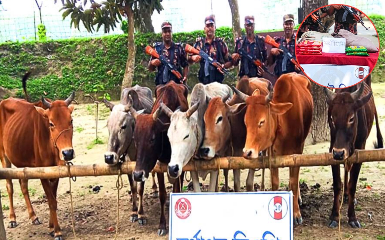 পরে ঘটনাস্থল থেকে ১২ লাখ ৫০ হাজার টাকা মূল্যের ৯টি গরু এবং ১৪ হাজার ১০০ টাকা মূল্যের চিনিসহ সর্বমোট ১২ লাখ ৬৪ হাজার ১০০ টাকার মালামাল জব্দ করা হয়।