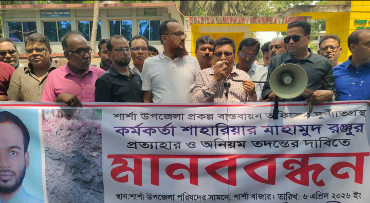 সোমবার (৬ এপ্রিল ২০২৬) সকাল ১১টার সময় শার্শা উপজেলা পরিষদের সামনে “শার্শাবাসীর ব্যানারে এ মানববন্ধন অনুষ্ঠিত হয়। এসময় হাজার হাজার সাধারণ মানুষ এই মানববন্ধনে অংশগ্রহণ করেন।