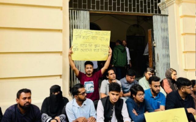 জগন্নাথ বিশ্ববিদ্যালয়ের (জবি) শিক্ষার্থীদের আবাসন সংকট নিরসনে প্রতিশ্রুত সম্পূরক বৃত্তির সুনির্দিষ্ট রোডম্যাপ ও তালিকা প্রকাশের দাবিতে উপাচার্য ভবনের সামনে অবস্থান কর্মসূচি পালন করছে ঐক্যবদ্ধ নির্ভীক জবিয়ান প্যানেল।