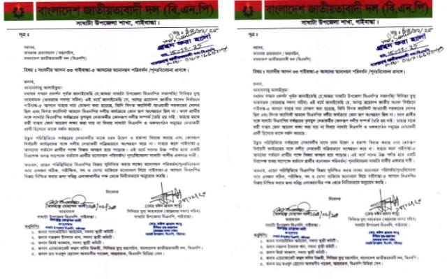 ১৪ ডিসেম্বর স্বাক্ষরিত পত্রে উল্লেখ করা হয়, ‘আসন্ন ত্রয়োদশ জাতীয় সংসদ নির্বাচনে গাইবান্ধা-৫ আসনে যার নাম ঘোষণা করা হয়েছে, তিনি বিগত ফ্যাসিস্ট আওয়ামী সরকারের দোসর ছিল এবং বিগত ফ্যাসিস্ট আমলে বিএনপির দলীয় কার্যক্রমে কোনরূপ অংশগ্রহণ ছিল না। ফলে প্রার্থীর সঙ্গে সাঘাটা বিএনপির সর্বস্তরের তৃণমুল নেতাকর্মীর কোনরূপ দলীয় সম্পর্ক তৈরি হয়নি। তার মাঝে কর্মী বান্ধব কোন আচরণ লক্ষ্য করা যায় না। বিধায় সাঘাটা বিএনপি ও অঙ্গ সংগঠনসমূহের নেতাকর্মী প্রার্থী হিসেবে তাকে বর্জন করেছে।